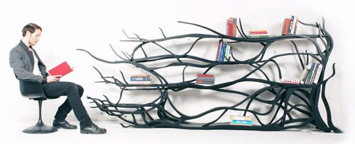 New York designer sebastian errazuriz the "deformed" (metamorphosis) bookshelf. Hand-carved from birch plywood production, the wind looks like a twig volume side of the lush, full of poetry.